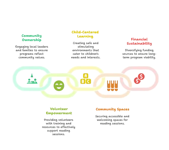 We believe true ownership rests within the community itself. We are nothing without the dedicated body of volunteers who run, build, and nurture safe, healthy spaces for children to read and grow. Together with village, church, and community leaders, we co-design reading programs that reflect local values and needs. By engaging parents, elders, and local councils, we celebrate and strengthen community leadership at every session, ensuring that children always have a welcoming place to belong and learn.